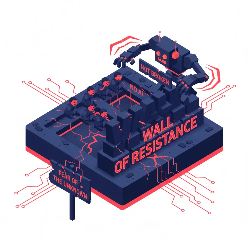 「AIに仕事が奪われる」と不信感を抱いたり、長年築き上げてきた既存フローを「否定されたくない」心理が邪魔をする。