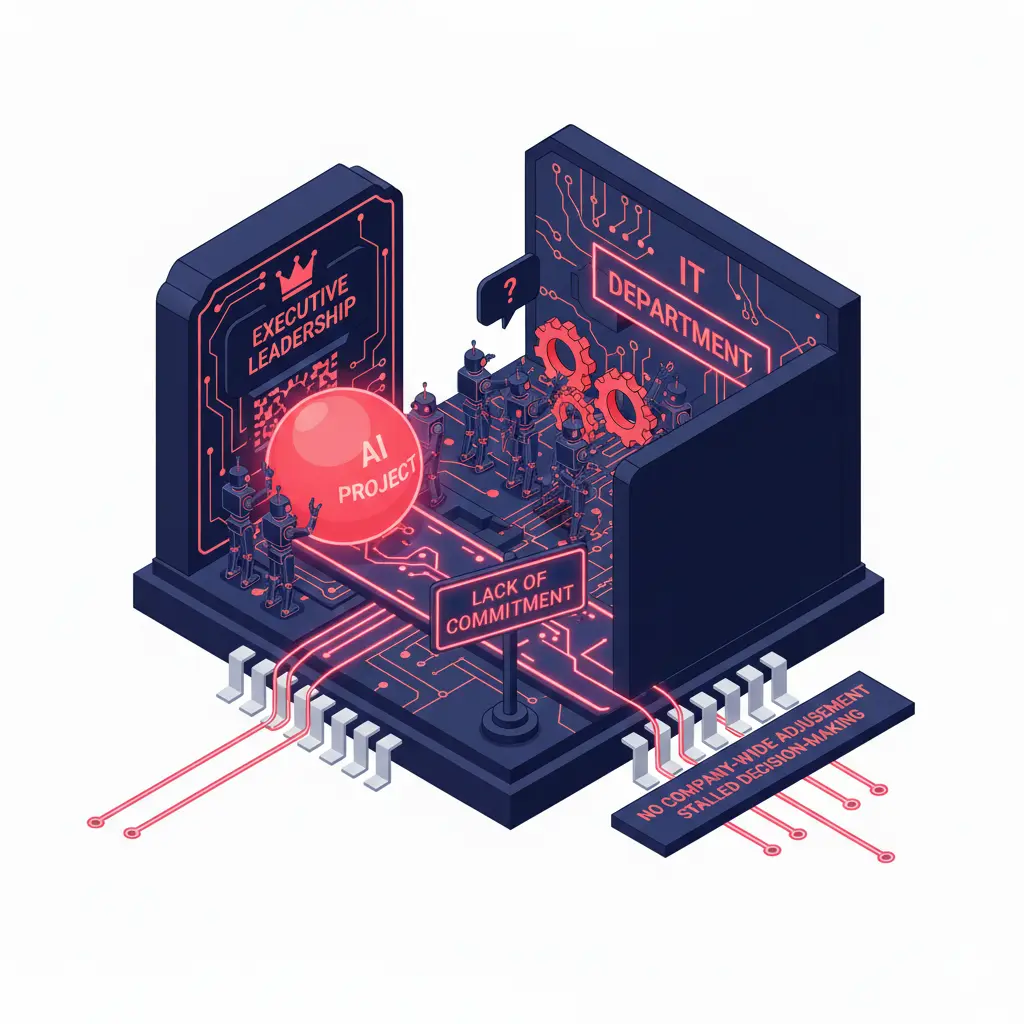 経営層のコミットメント不足で、AIプロジェクトが特定の部署に丸投げされ、全社的なリソース調整や意思決定が滞る。