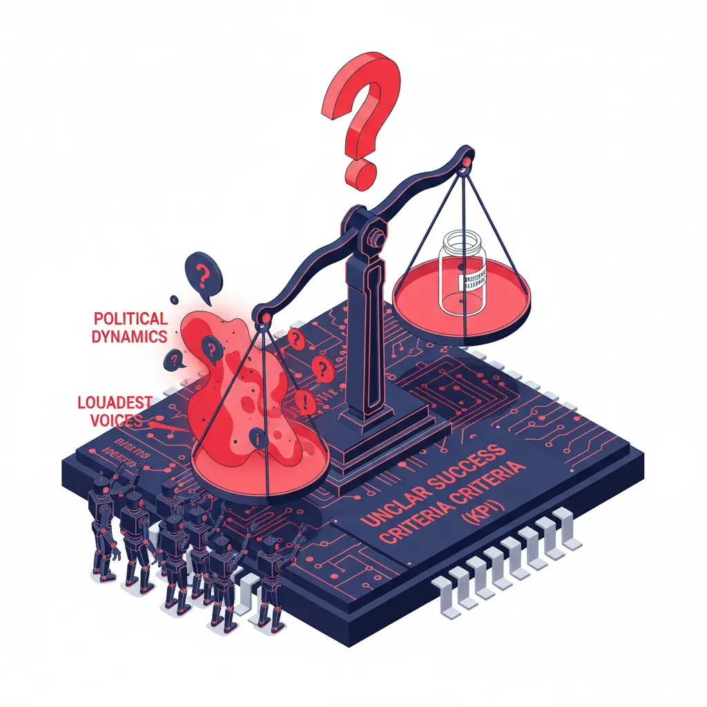 プロジェクトの成果を判断するための具体的な指標(KGI/KPI)をうまく設定できず、組織内の声の大きい者の意見や政治的な力学が勝る。