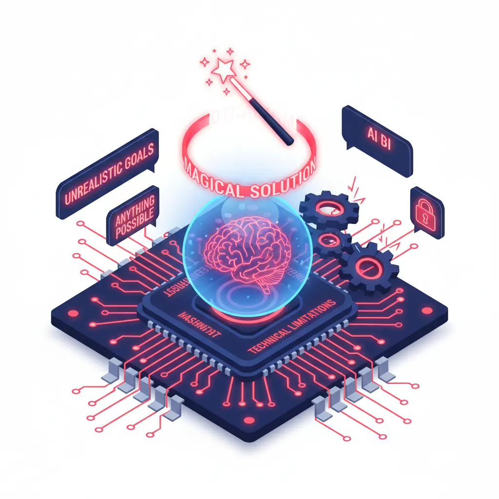 AIを「何でも解決する魔法」と捉え、現在の技術的限界を無視した非現実的な目標が設定されてしまう。