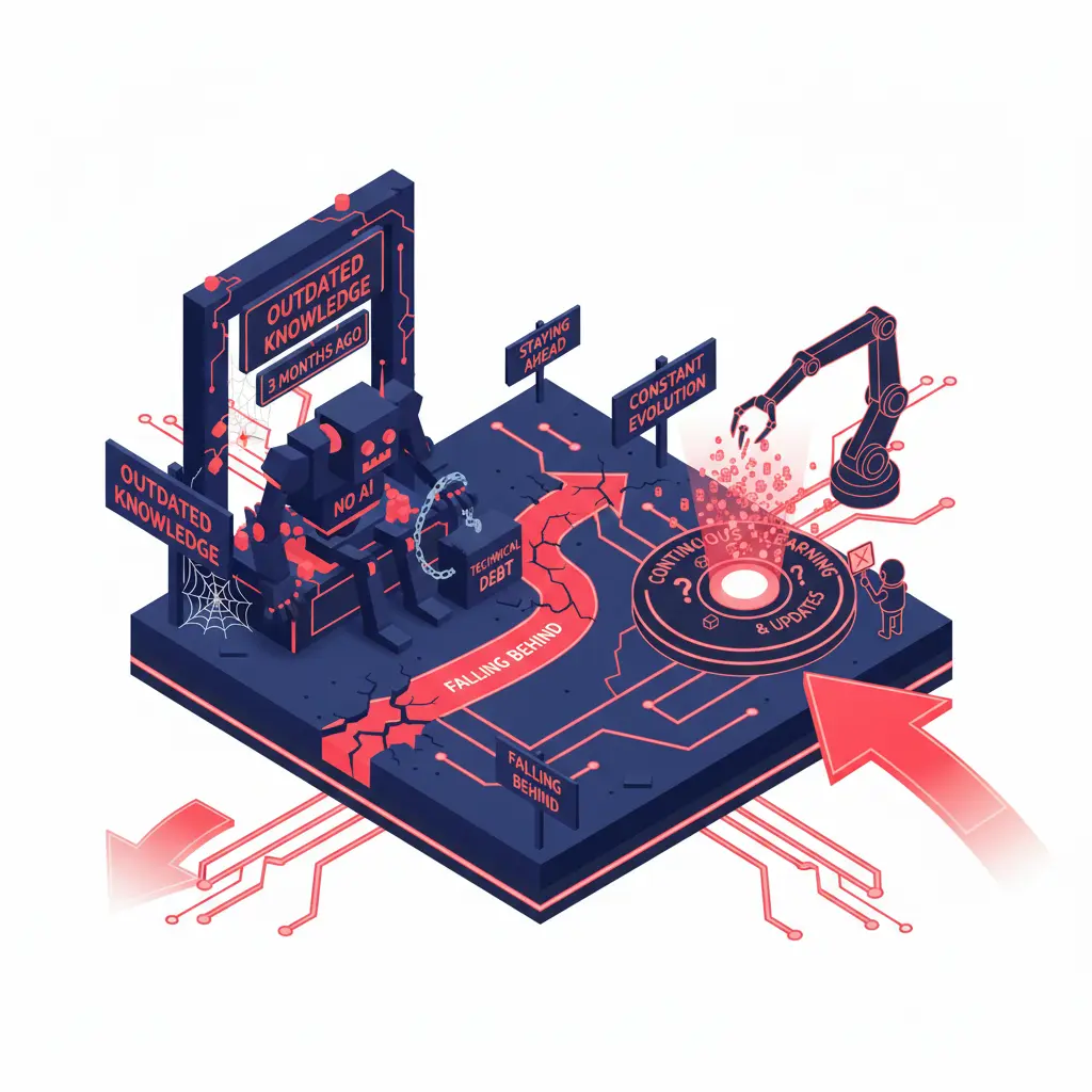 AI技術の陳腐化スピードは凄まじく、3ヶ月前の最善策が今日の負債になってしまため、学びを止めると相対的に後退していく。