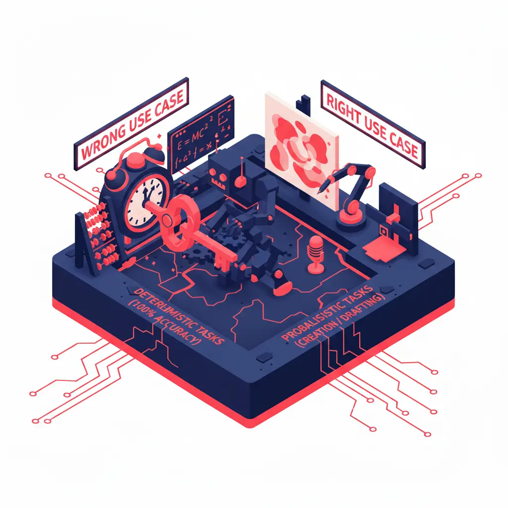 生成AI(確率論的ツール)に、厳密な計算や正確性が100%求められるタスク(決定論的タスク)を割り当ててしまう。
